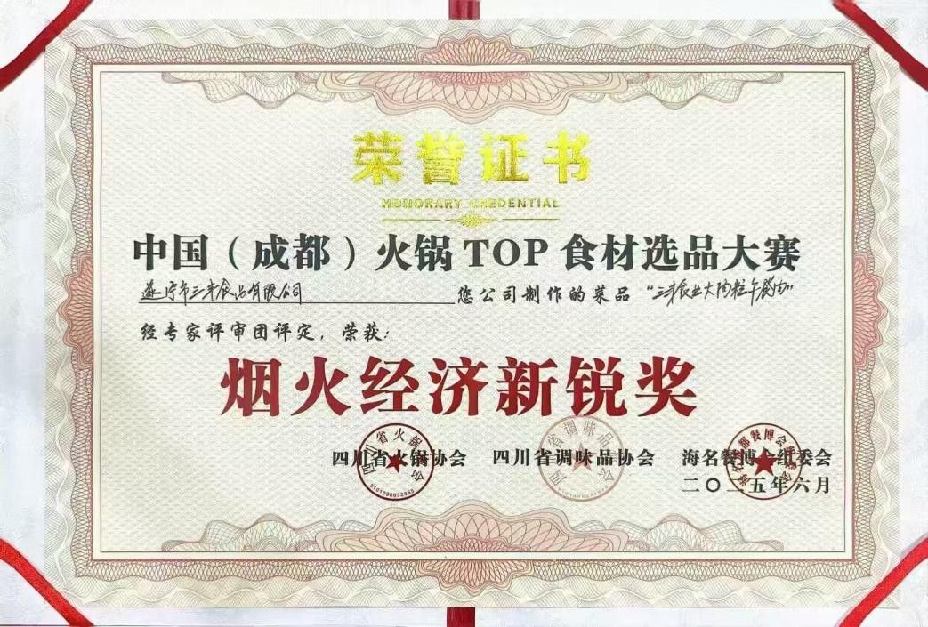 在本次博览会中国(成都)火锅TOP食材选品大赛中,三丰更是凭借明星产品大肉粒午餐肉荣膺“烟火经济新锐奖”,充分展现了其在火锅食材细分领域的品质实力。